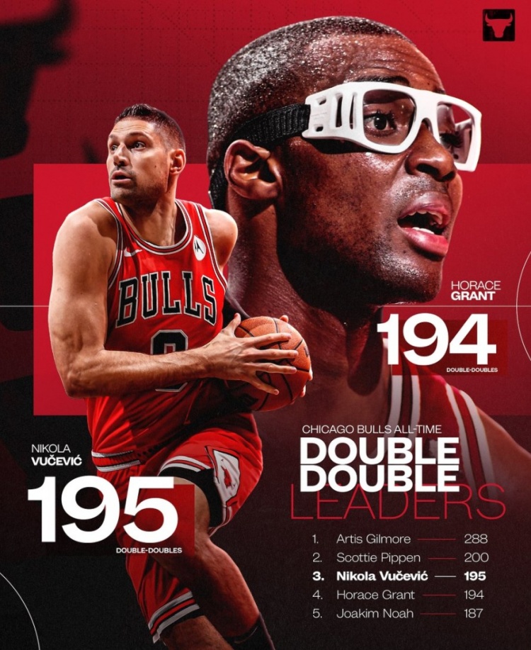 2025-03-11 10:51:44武切維奇公牛兩雙數(shù)超越”眼鏡蛇“格蘭特 上升至隊(duì)史第三位
