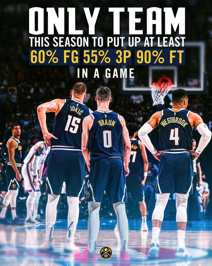 2025-03-12 12:31:21打的可是雷霆!掘金昨天打出60-55-90%的命中率 賽季首隊