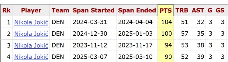 2025-03-12 12:34:32約基奇連續(xù)3場至少砍90分50板30助 聯(lián)盟合并以來唯一&他做到4次!