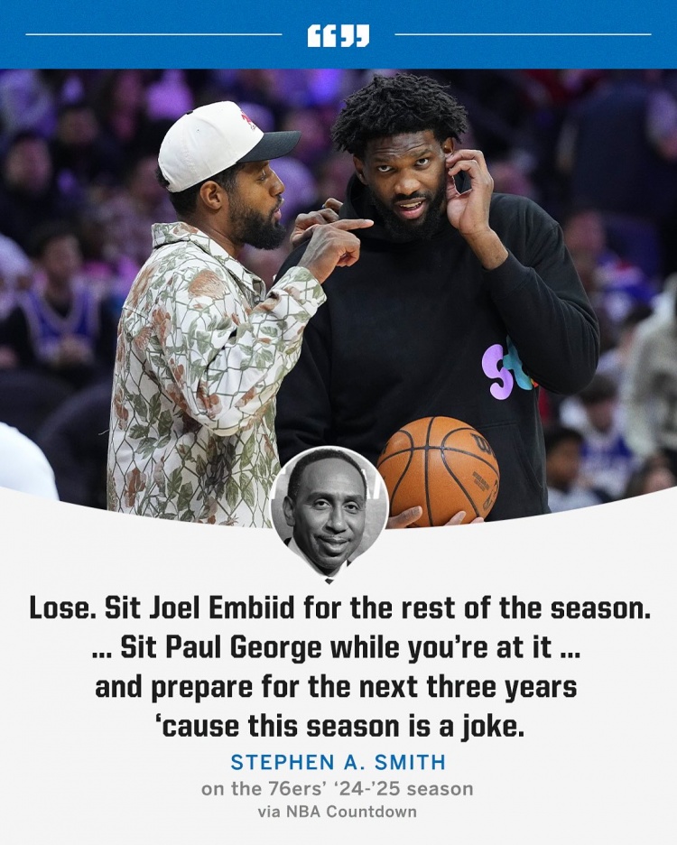 2025-02-24 16:11:00A-史密斯:恩比德&喬治都別打了 準(zhǔn)備后面3年吧 76人這季就是笑話