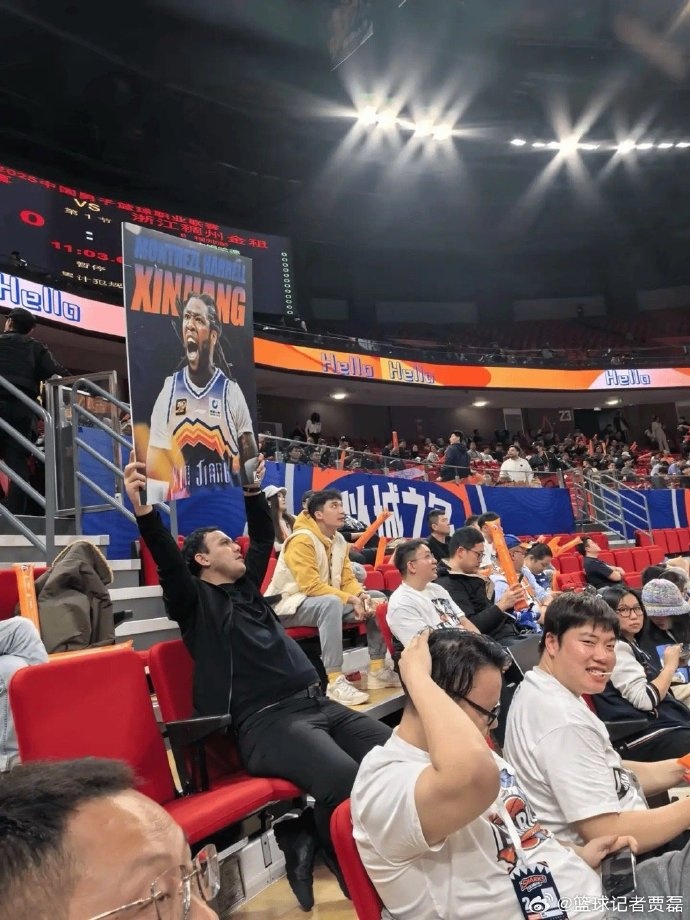 2025-03-13 00:30:00這!浙江客戰(zhàn)上海 有球迷舉著哈雷爾身穿新疆球衣照為上海加油