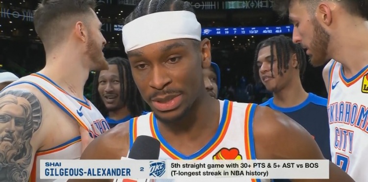 2025-03-13 17:20:33亞歷山大對(duì)陣綠軍連續(xù)5場(chǎng)拿下至少30分5助攻 追平歷史紀(jì)錄!
