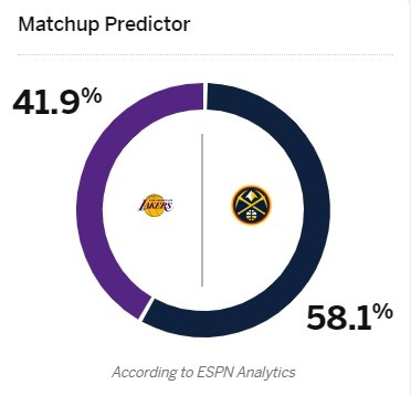 2025-03-14 20:09:53湖人背靠背!ESPN預(yù)測(cè)明日湖礦大戰(zhàn):湖人41.9%勝率 掘金58.1%
