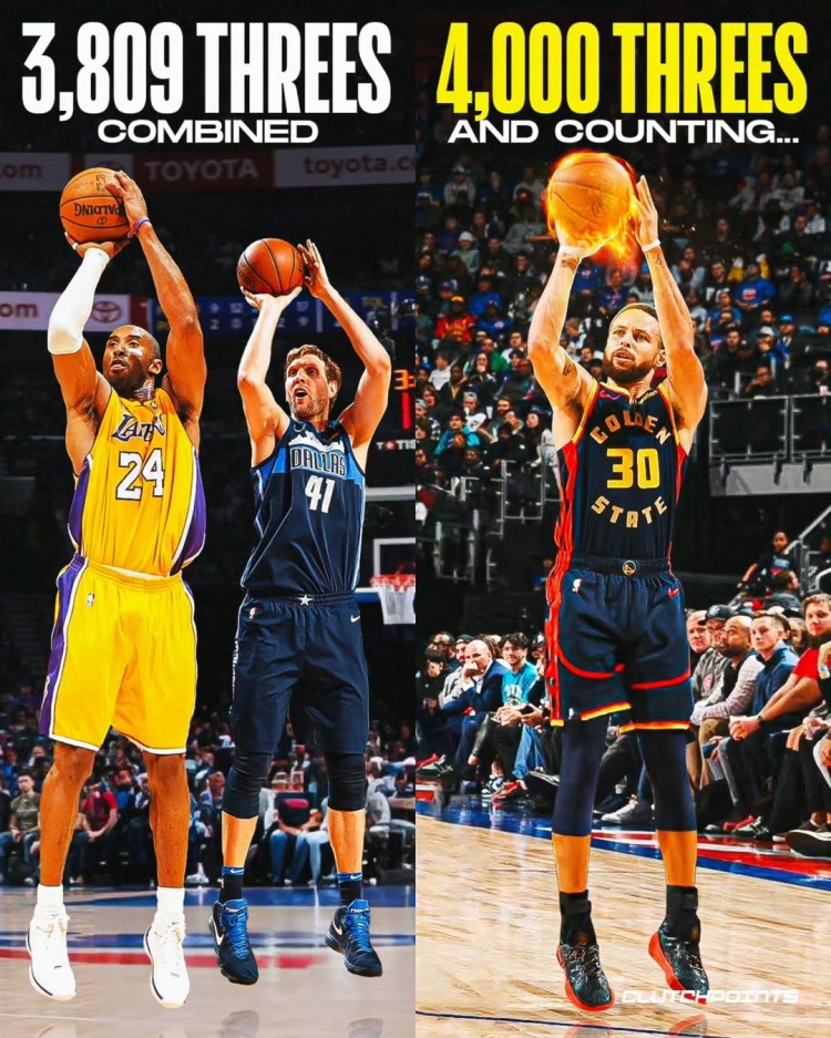 2025-03-14 20:26:03科比諾維茨基生涯合計(jì)投中3809記三分 合起來(lái)不敵庫(kù)里的4000記