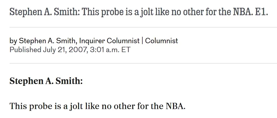 在《一樁事先張揚(yáng)的謀殺案》中,相信主角清白的法官,說(shuō)出了這么一句話:「給我一個(gè)偏見(jiàn),我將撬動(dòng)地球」。而史蒂芬·A·史密斯的職業(yè)生涯,某種意義上可以概括為:給我一個(gè)詹姆斯,我將撬動(dòng)體育圈最多的流量。