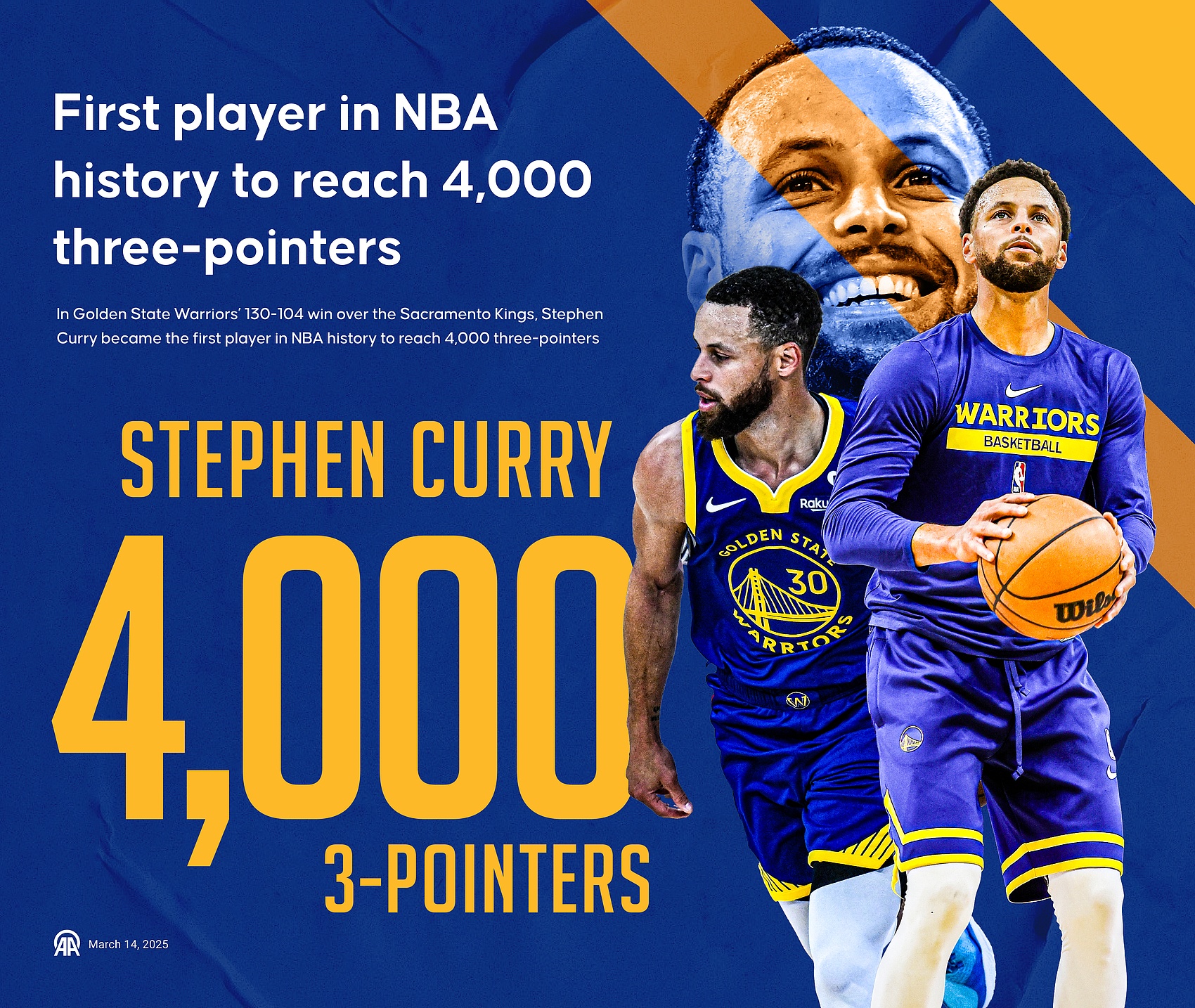 2025-03-14 10:45:292025年03月14日 庫里遭嚴防仍解鎖4000記三分 勇士8人上雙大勝國王豪取6連勝