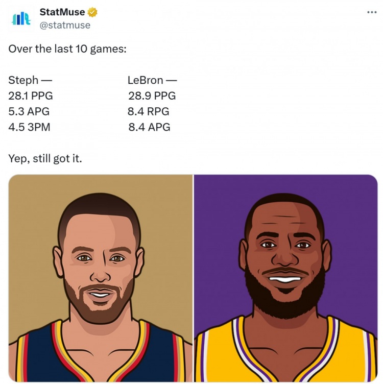 2025-02-25 00:26:54寶刀未老!近10戰(zhàn)庫里場均28.1分&進4.5三分 詹姆斯28.9+8.4+8.4