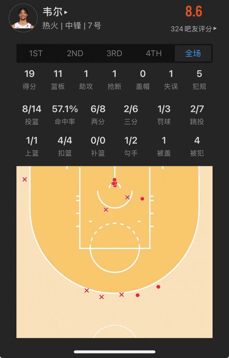 熱火15號秀 克雷爾-韋爾 登場35.7分鐘