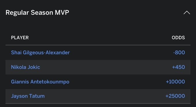 2025-03-16 22:38:08大局已定?今日比賽結(jié)束后 MVP賠率SGA-800斷層領(lǐng)先 約基奇+450