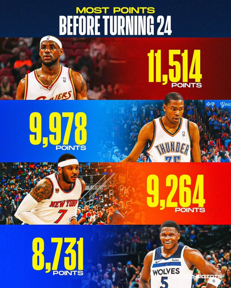 2025-03-18 18:07:51球星24歲前得分榜:華子8731登第4 詹姆斯斷檔第1 KD甜瓜分列2、3