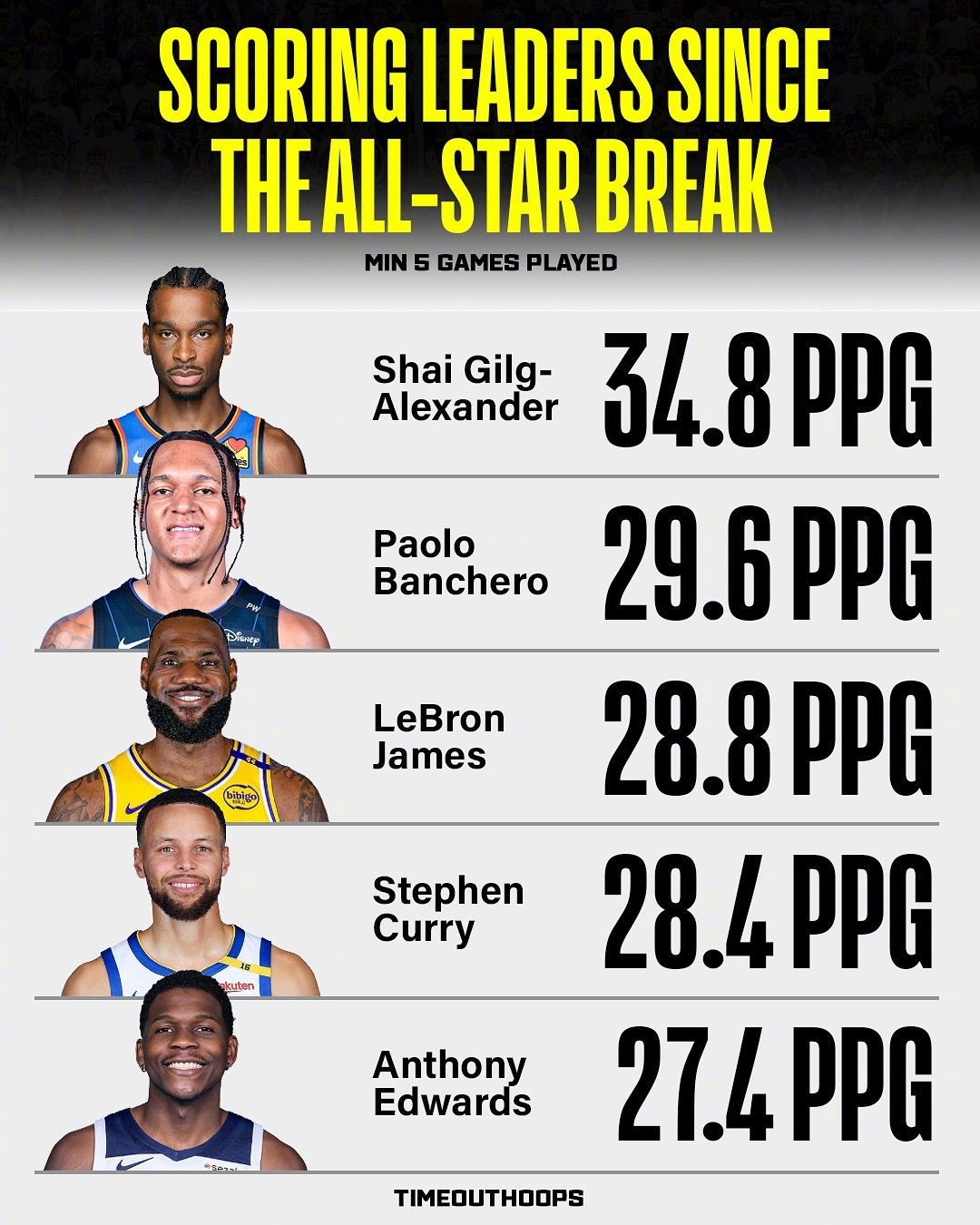 2025-03-19 11:11:52全明星后得分榜:鴨梨34.8分?jǐn)鄼n第一 班凱羅第二 詹庫分列三四位