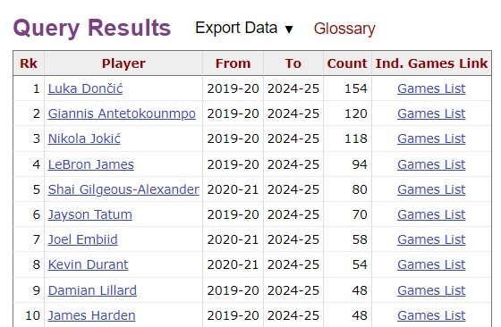 2025-03-20 21:35:062020年以來的30+5+5場次榜單:東契奇155場居首 字母哥120場第2