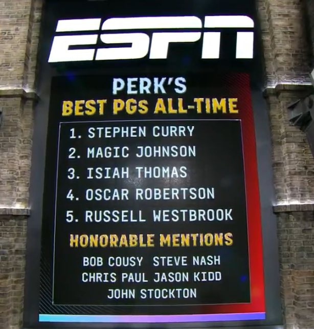 2025-03-20 21:50:35帕金斯評(píng)歷史前5控衛(wèi):庫里&魔術(shù)師&托馬斯&大O&威少