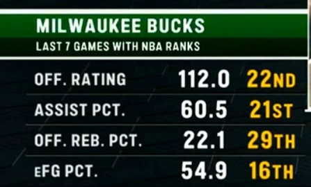 2025-03-21 11:24:56雄鹿近7場進(jìn)攻便秘:進(jìn)攻效率聯(lián)盟第22 助攻&前板百分比都20開外