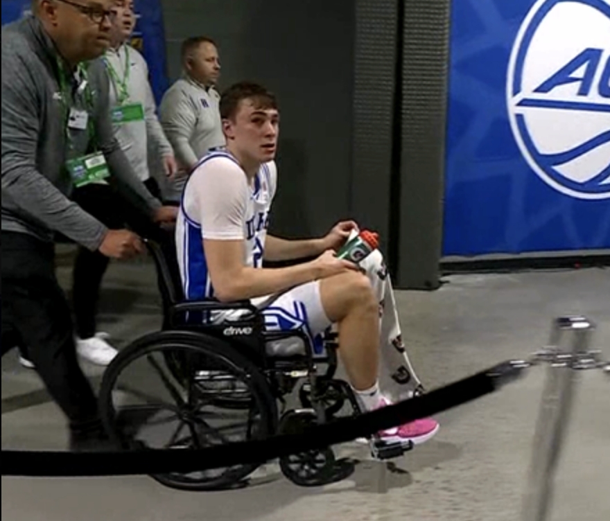 3月14日,ACC分區(qū)錦標(biāo)賽1/4決賽,杜克大學(xué)對(duì)陣佐治亞理工學(xué)院上半場(chǎng),弗拉格在搶籃板落地時(shí)踩到對(duì)手恩東戈的腳上扭傷腳踝,他起身后被攙扶著走到場(chǎng)邊,之后坐著輪椅離場(chǎng),在接受檢查之后自行走回球隊(duì)替補(bǔ)席,下半場(chǎng)沒有出戰(zhàn)。