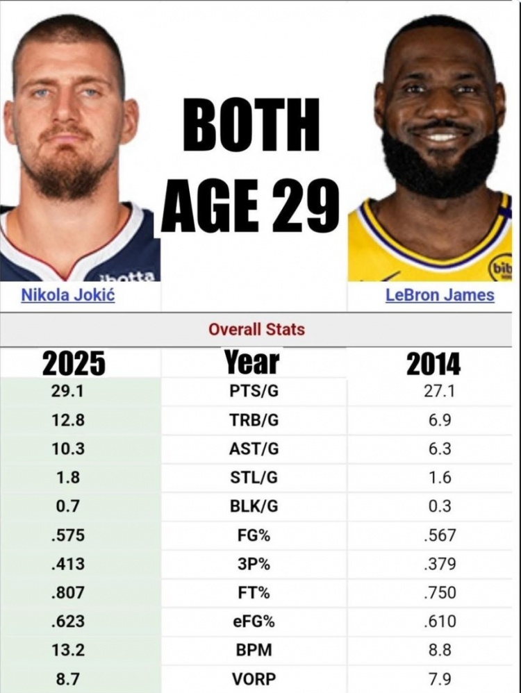 2025-03-22 10:41:4429歲約基奇場(chǎng)均29.1分12.8板10.3助1.8斷 各項(xiàng)數(shù)據(jù)皆>同期詹姆斯