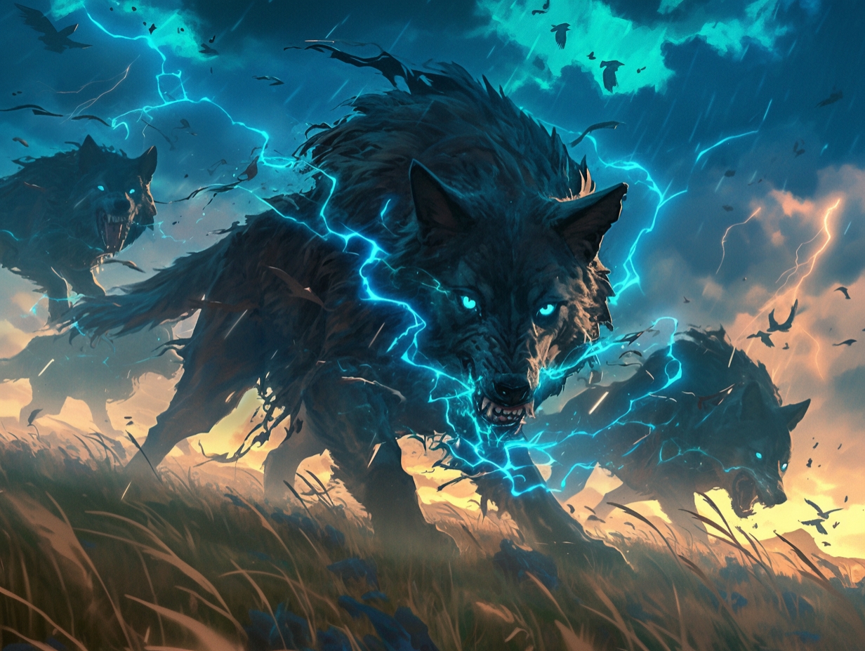 2025-02-25 16:12:03【AI繪圖】撕裂蒼穹!狼群化身雷電主宰~