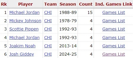 2025-03-23 20:50:18基迪單賽季打出4次三雙 隊(duì)史第2多 88-89賽季喬丹曾15次三雙