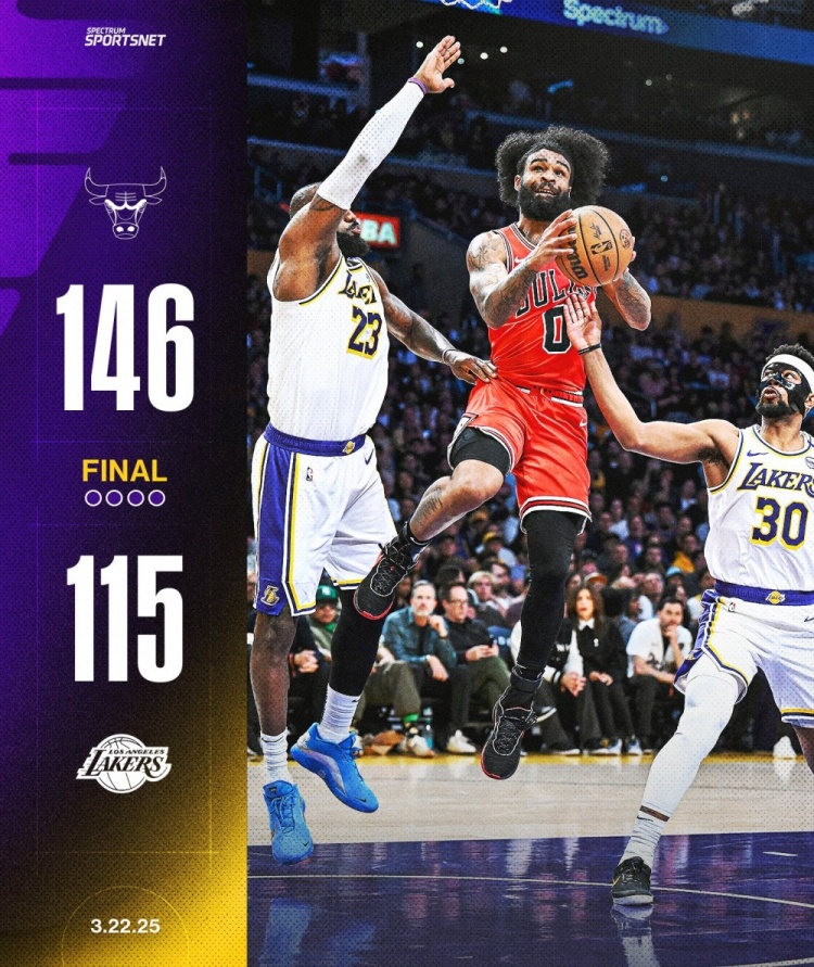 2025-03-23 21:23:37湖人31分慘敗公牛!刷新兩隊交鋒史最大分差 此前為28分