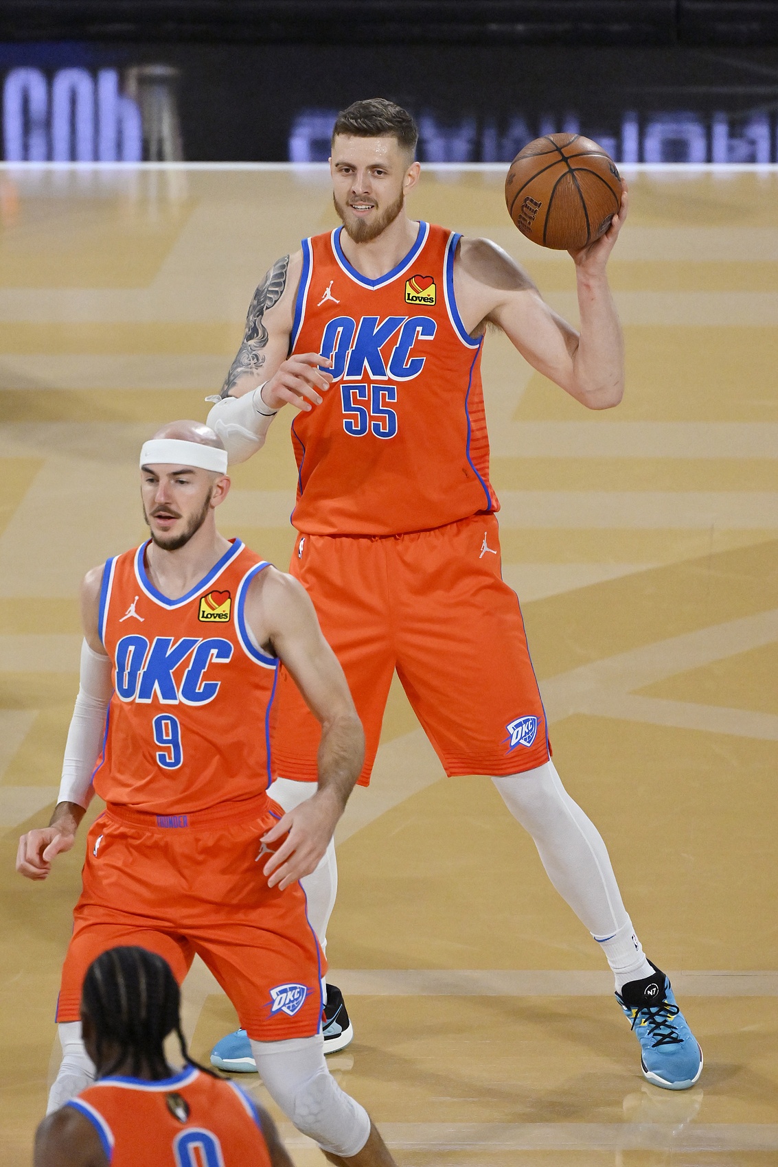 2023-24賽季,戴格諾特教練帶著25歲的亞歷山大、22歲的杰倫-威廉姆斯、21歲的霍姆格倫、24歲的多特、21歲的基迪、20歲的卡森-華萊士、21歲的杰林-威廉姆斯、24歲的以賽亞-喬、25歲的阿隆-維金斯、29歲的肯里奇-威廉姆斯更進一步,他們進攻效率第3、防守效率第4,常規(guī)賽豪取57勝25負(fù),登頂西部第一!