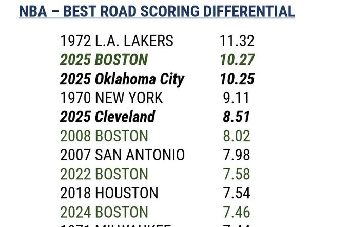 2025-03-27 20:25:30凱爾特人本賽季6場(chǎng)客場(chǎng)25+大勝 歷史第3多 僅次于16馬刺和22綠軍