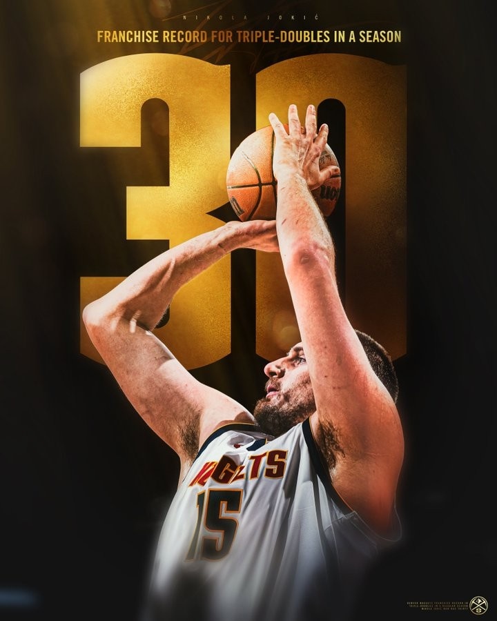 2025-03-27 20:30:34打破自己保持的隊史紀(jì)錄!掘金官方曬海報:約基奇單季30次三雙!