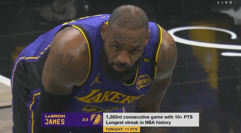 2025-03-27 20:45:06雖遲但到!詹姆斯第四節(jié)開局連得8分連續(xù)1283場比賽得分上雙!