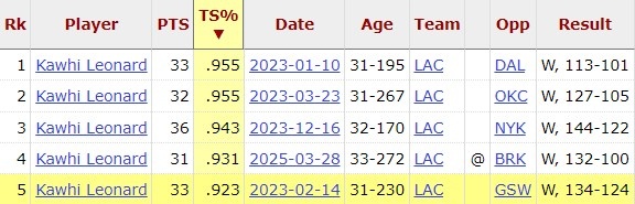 2025-03-29 21:01:00小卡今天以93.1%真實(shí)命中率砍下30+ 生涯152場(chǎng)30+中第4高效