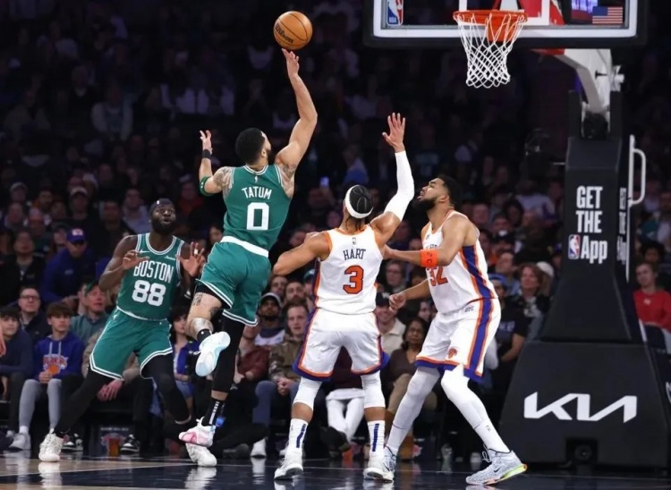 而10月23日和2月9日兩次對陣凱爾特人,尼克斯總共輸?shù)袅?0分。恰好又是前后兩場被對手三分射穿,一場命中率47.5%,另一場48.7%。