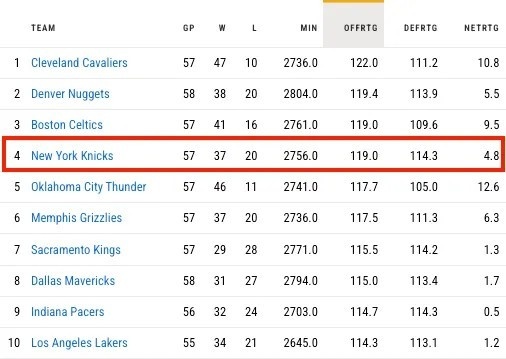 但總覺得,如果要選一支球隊(duì)站上頂點(diǎn),那尼克斯不會得到什么票數(shù)。因?yàn)樗麄冊诟叨司值谋憩F(xiàn)實(shí)在難以恭維......