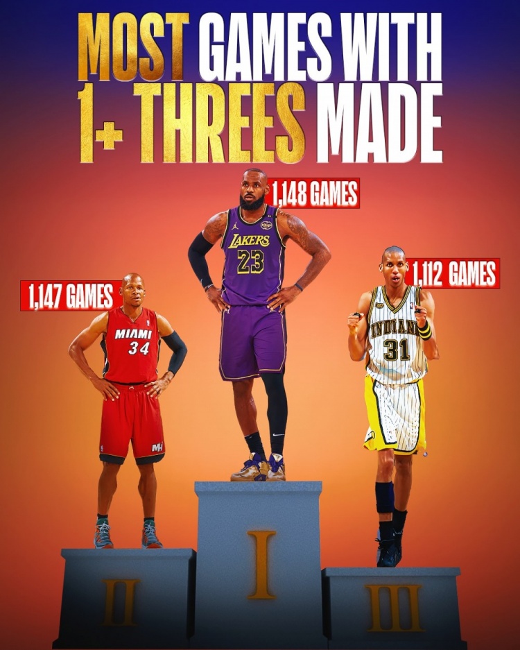 2025-02-27 08:14:39神跡+1!詹姆斯1148場至少命中1記三分 超越雷-阿倫獨霸歷史第一