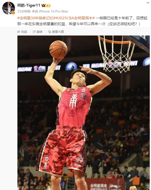2025-02-28 16:16:03周鵬:回想起那一年在東莞全明星賽的扣籃 希望今年可以再來(lái)一次