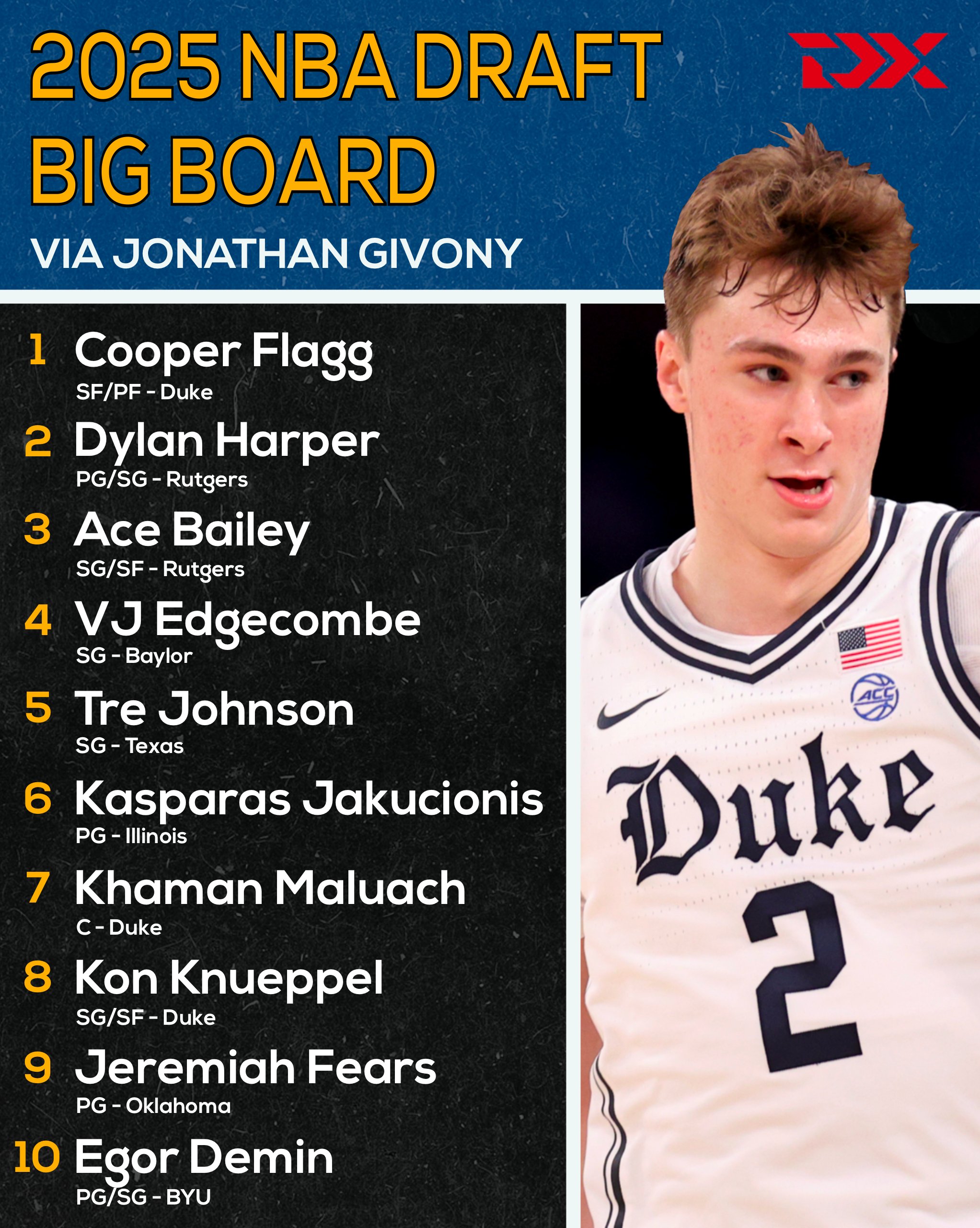 ESPN本次榜單前四位與TA榜單完全一致,杜克大學新星庫珀-弗拉格穩(wěn)居首位,羅格斯大學雙子星迪倫-哈珀和埃斯-貝利分列二三,第四位是來自巴哈馬的新人后衛(wèi)埃奇庫姆。