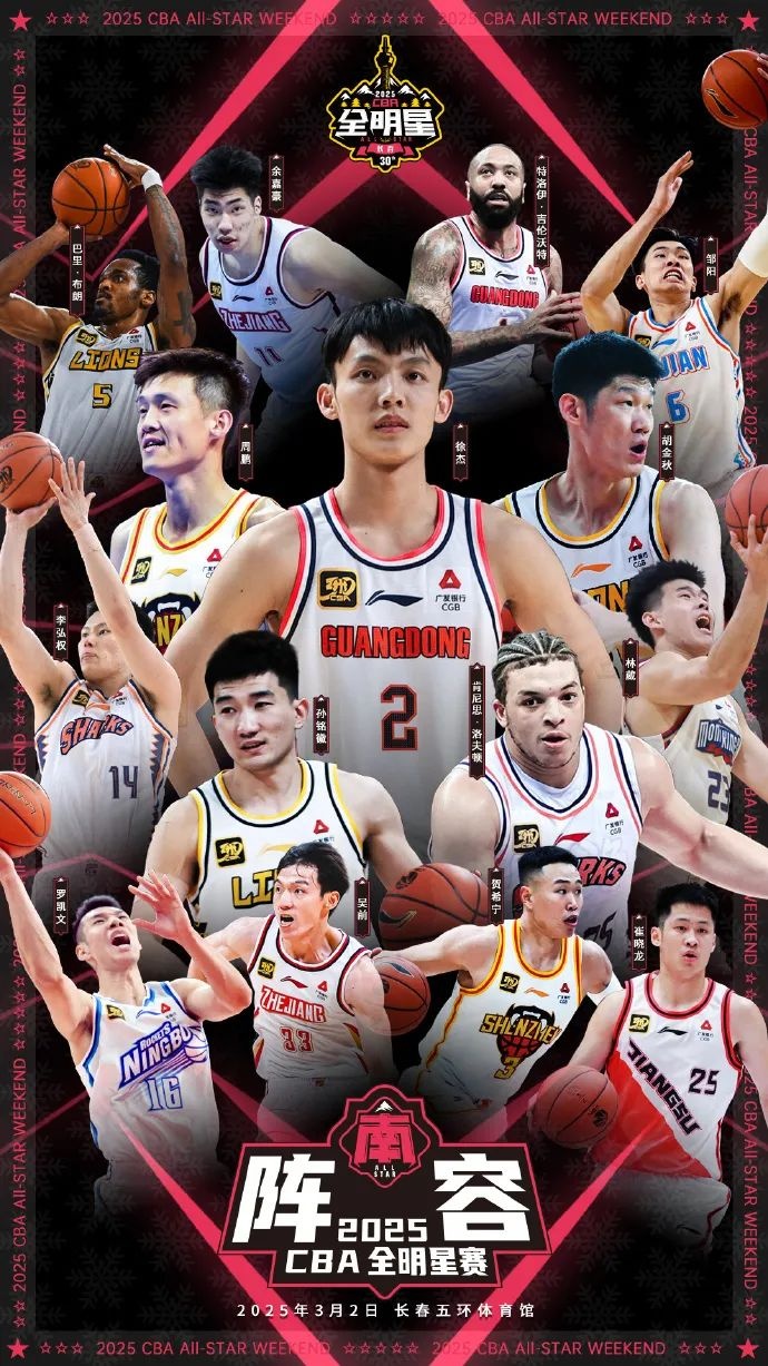何為全明星賽?說白了就是球星歡聚一堂給球迷們獻禮的比賽。顯然,CBA聯(lián)賽只讀懂了“歡聚一堂”這個詞。2025年CBA全明星周末正賽的名單是: