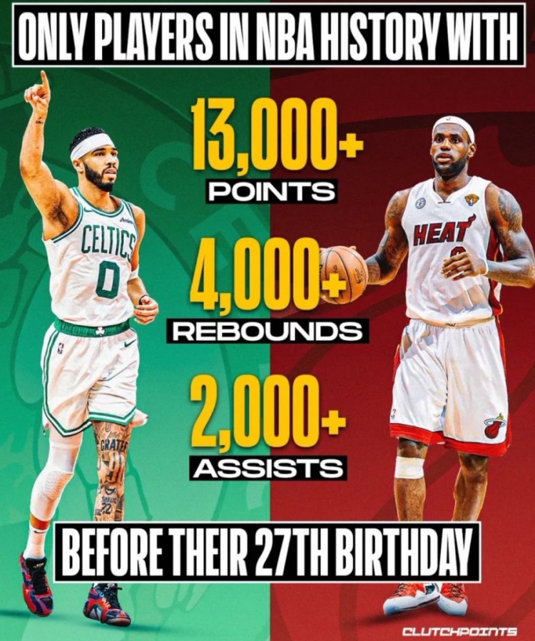2025-03-04 11:18:54塔圖姆27歲前至少13000分4000板2000助 歷史唯二&比肩詹姆斯