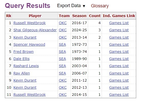 2025-03-04 22:31:13亞歷山大單賽季4次50+ 追平MVP賽季威少并列隊史最多