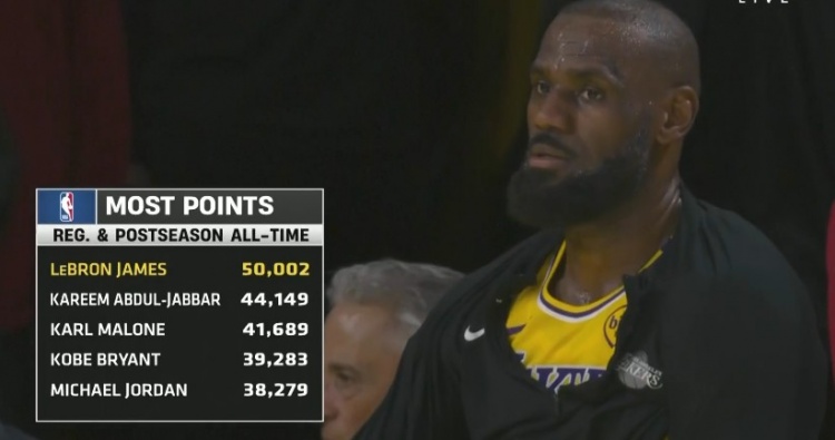 2025-03-05 12:46:59空前絕后!歷史總得分榜詹姆斯高居榜首 科比&喬丹分列第4和第5