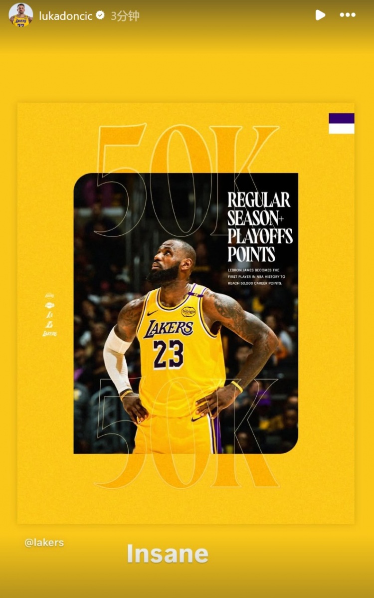2025-03-05 23:09:42加入湖人成網(wǎng)癮少年!東契奇轉(zhuǎn)發(fā)詹姆斯50000分海報:太瘋狂啦