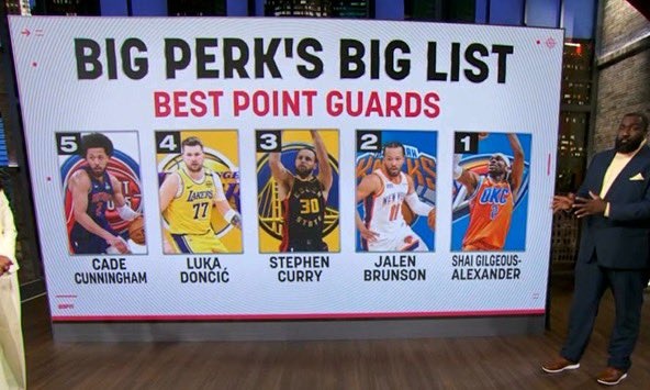 2025-03-06 12:41:22帕金斯列聯(lián)盟目前前5控衛(wèi):SGA、布倫森、庫里、東契奇、CC