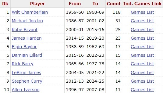 2025-03-06 22:11:46哈登生涯第24場常規(guī)賽50+ 歷史第4多 僅次于張伯倫&喬丹&科比
