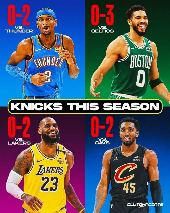 2025-03-07 14:57:36欺軟怕硬?尼克斯本季對(duì)聯(lián)盟前四騎士/雷霆/綠軍/湖人共0勝9負(fù)
