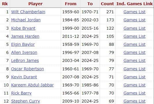 2025-03-07 15:14:40庫里砍下生涯第70場40+ 追平賈巴爾和巴里 并列歷史第10