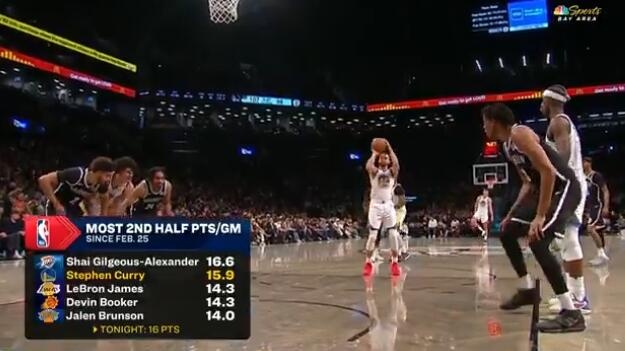 2025-03-07 15:16:382月25日以來(lái)下半場(chǎng)場(chǎng)均得分:庫(kù)里15.9僅次于SGA 詹姆斯排第三
