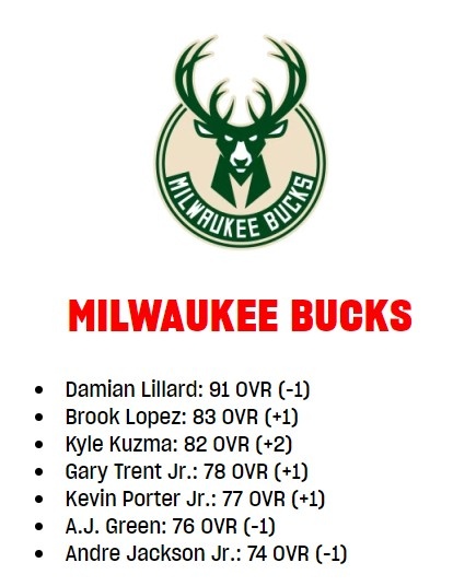 2025-03-07 15:21:47雄鹿球員2K能力更新:利拉德-1至91 庫(kù)茲馬+2至82 小凱文-波特+1