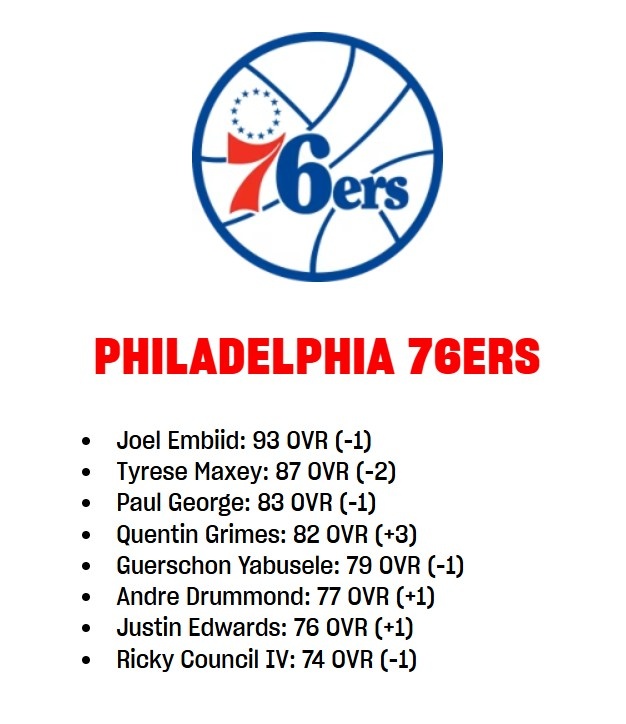 2025-03-07 15:25:1176人2K能力值更新:恩比德降至93 馬克西降至87 喬治降至83