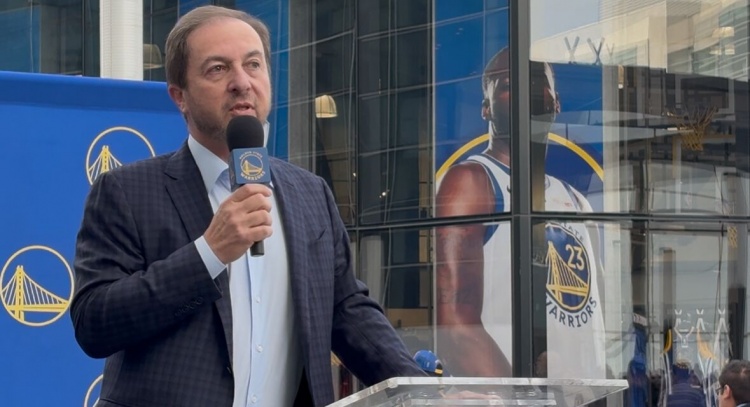 今日伊戈達(dá)拉9號(hào)球衣退役,賽前勇士在大通中心外為其舉行了徽章揭幕儀式,勇士老板拉科布發(fā)表了講話,小吧整理了部分采訪內(nèi)容。