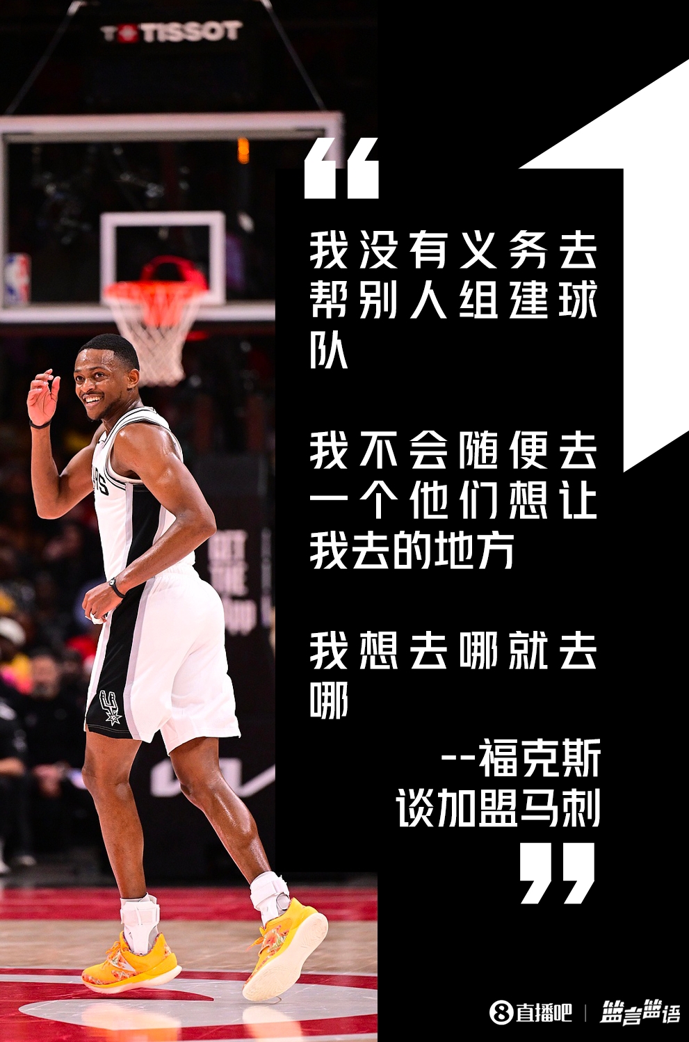 2025-03-08 11:57:24福克斯談加盟馬刺:我沒(méi)義務(wù)幫別人組建球隊(duì) 我想去哪就去哪
