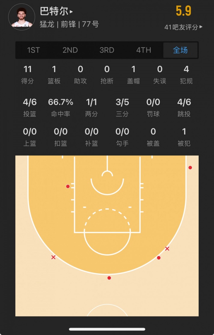 猛龍落選秀 賈米森-巴特爾 登場(chǎng)22.8分鐘