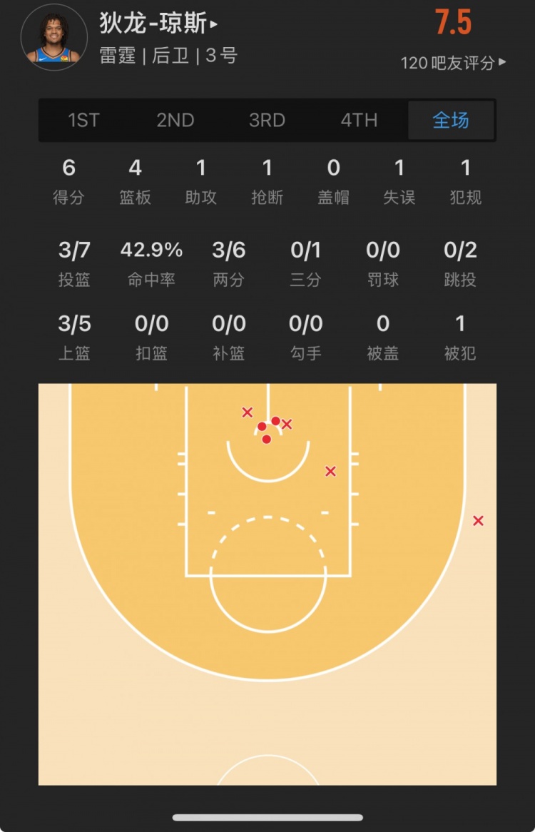 雷霆26號(hào)秀 狄龍-瓊斯 登場(chǎng)25.1分鐘