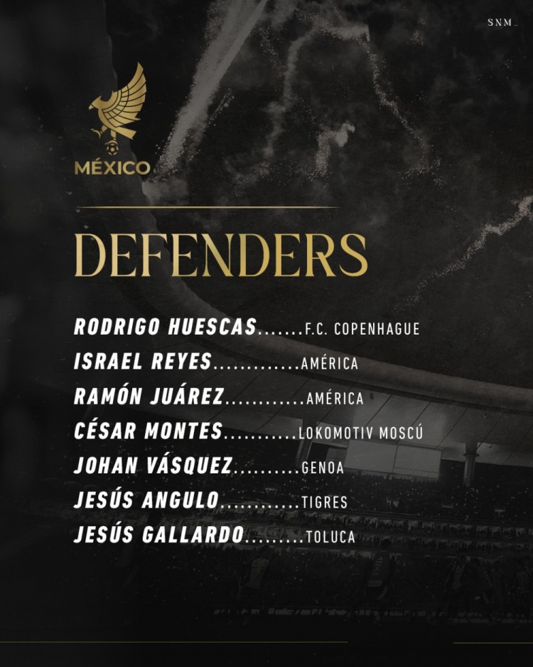 前鋒:圣地亞哥-希門尼斯(米蘭)、貝加(托盧卡)、勞爾-希門尼斯(富勒姆)、奎尼奧內(nèi)斯(卡迪西亞)、阿爾瓦拉多(瓜達(dá)拉哈拉)、韋爾塔(安德萊赫特)、埃弗林-阿爾瓦雷斯(蒂華納)